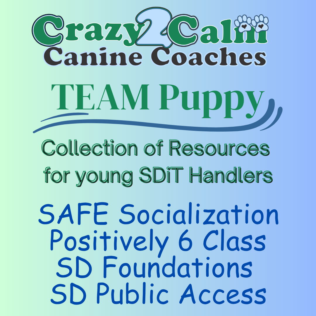 It's less about age and more about training history with Crazy2Calm. If you have new puppy or older dog and are just starting out with the basics including SAFE Socialization, Puppy Basic Manners, SD Foundations, and/or SD Public Access Training, this is your starting place.