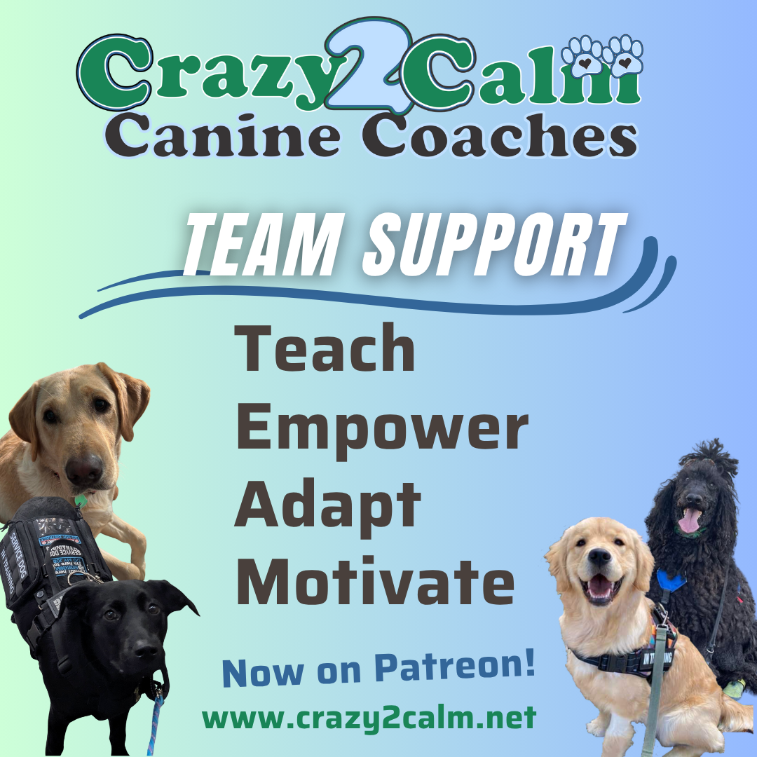 Crazy2Calm Canine Coaches are working together to provide blogs on a wide variety of topics to help all working dogs; service dogs, therapy dogs, sport dogs, etc.